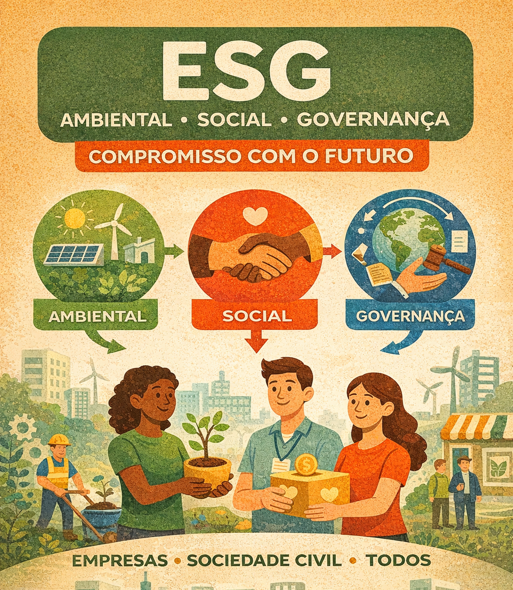 Você já deve ter ouvido falar em ESG. A sigla vem do inglês Environmental, Social and Governance — que significa Ambiental, Social e Governança. Na prática, ESG é uma forma de avaliar como empresas cuidam do meio ambiente, das pessoas e da forma como são administradas. Não se trata apenas de lucro, mas de responsabilidade e impacto positivo.